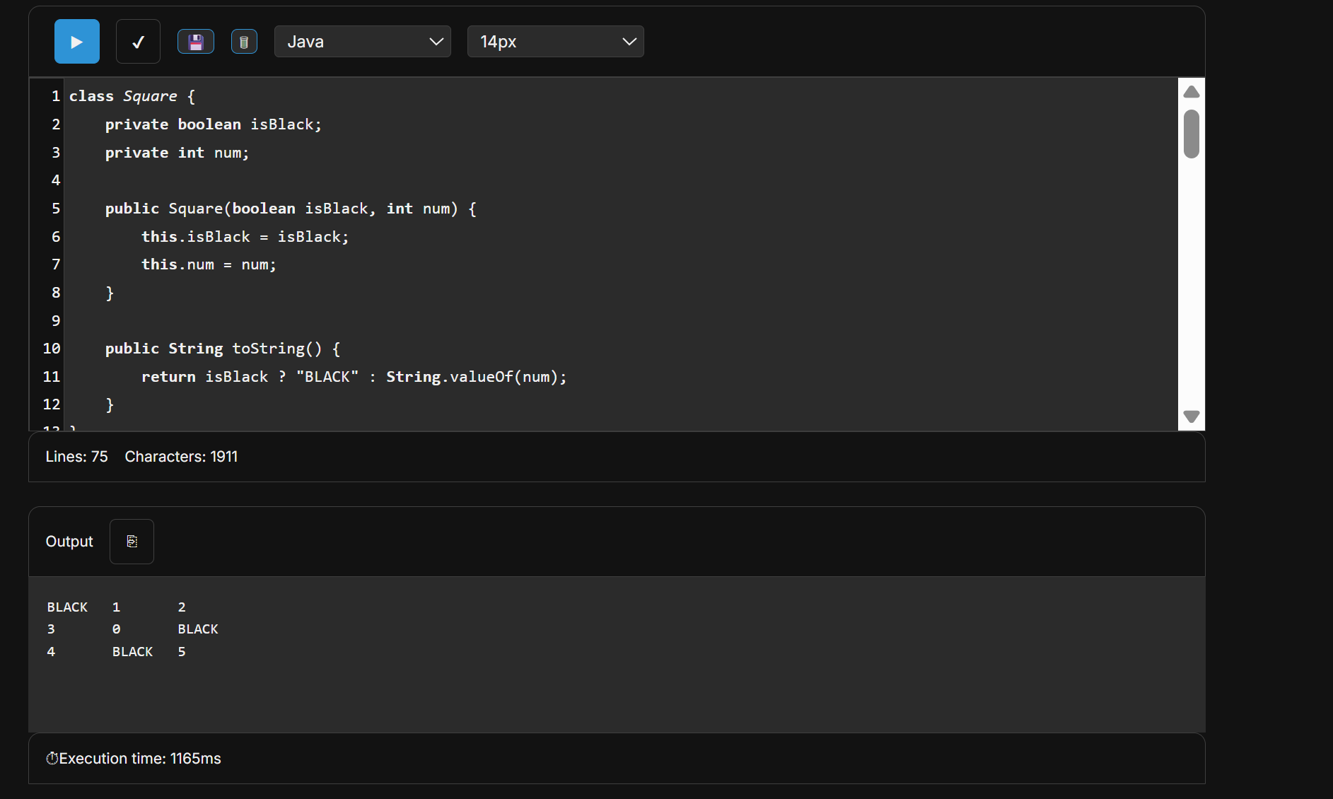 return black ? "BLACK" : Integer.toString(number);