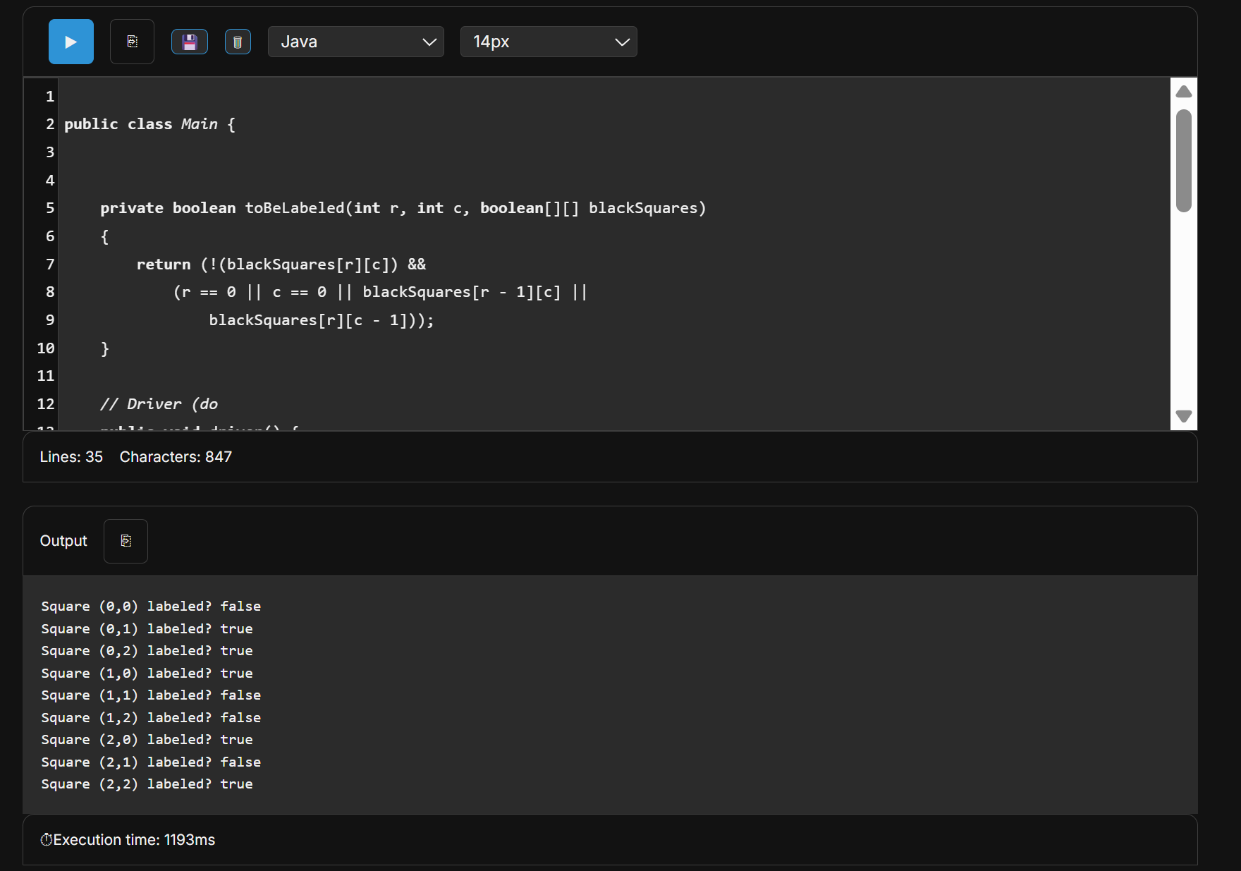if (toBeLabeled(r, c, blackSquares)) {